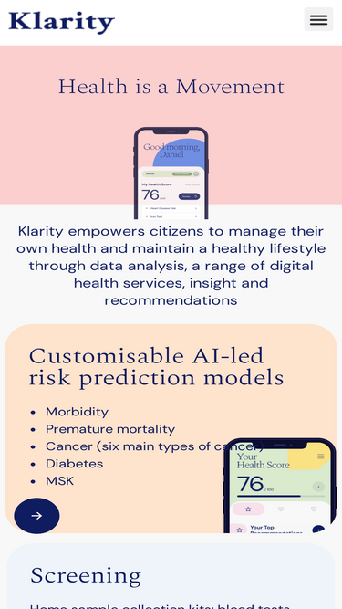 71%Klarity offers AI-led mortality and chronic disease risk predictions, insights and recommendations.