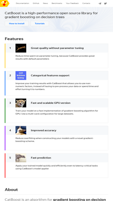 85%CatBoost is a machine learning algorithm that uses gradient boosting on decision trees. It is available as an open source library.
