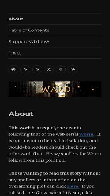 This work is a sequel, the events following that of the web serial Worm. It is not meant to be read in isolation, and would-be readers should check out the prior work first. Heavy spoilers for Worm follow from this point on. Those wanting to read this story without any spoilers or information on the … Continue reading "About"
