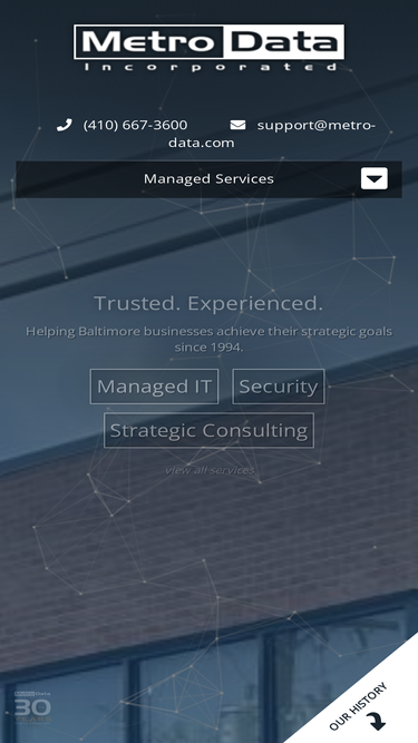 84%Celebrating 30 Years of ServiceFor all of your business information system needs:Managed I.T. Information Systems SecurityCloud & Hybrid ComputingStrategic ConsultingCIO ServicesMetro Data, Inc. is a well-established Managed I.T. Services Provider that works exclusively with business clients to develop and apply customized technology solutions that accomplish a client's strategic goals. 2024 marks our 30th year in business. We focus on the business objectives of each customer and deliver on our solutions and promises.