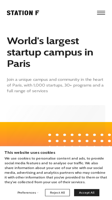 93%With more than 30 startup programs, 35 public administrations, 150 VC funds, 4 mentorship offices and 600 events per year, STATION F offers all the best resources and knowledge to empower the next generation of entrepreneurs. Startups will benefit from the community and meet other great entrepreneurs.