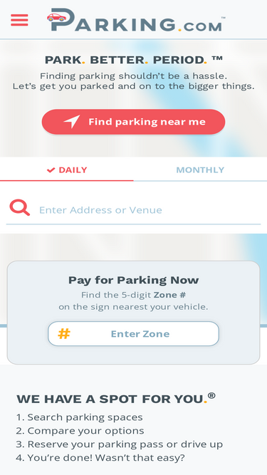 96%find your perfect parking space using our growing database of thousands of parking lots and garages, street and metered parking and even private driveways!