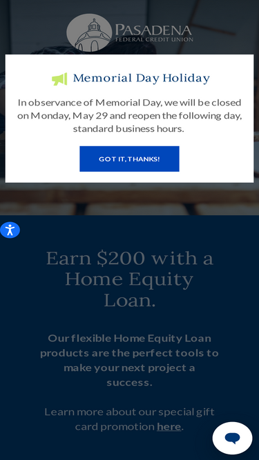 100%pasadena federal credit union provides great service and value on auto loans, credit cards, home loans, and more to our ca community. explore accounts now.