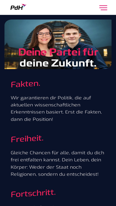 52%Das motiviert unsere Neumitglieder! Hier kannst du einige der Beitrittsgründe lesen, die aus Mitgliedsanträgen stammen und zur Veröffentlichung freigegeben wurden. „Tatsächlich bin ich über den Wahl-O-Mat auf die Partei aufmerksam geworden und war begeistert, wie gut die Positionen der PdH mit meinen übereinstimmten. Nach der Recherche auf Ihrer Website hat sich dieses Gefühl bestätigt. Ich bin danach zu einem „Humanis-Tisch“ in Erlangen gegangen, um ein paar der Mitglieder kennenzulernen. Dieses Treffen war sehr überzeugend und ich kann mir gut vorstellen in der Runde mitzuarbeiten.“ „Dass das jeweilige Individuum im Mittelpunkt steht und das Themen nicht emotional angegangen sondern unter Berücksichtigung wissenschaftlicher Erkenntnisse bzw. von Fakten diskutiert werden.“ „Euer Fokus auf eine wissenschaftliche, rationale Herangehensweise ist denke ich meine Hauptmotivation. Und das effektivste Mittel gegen den Populismus. Die Tradition der Aufklärung ist etwas auf das wir durchaus stolz sein dürfen. Ihr seid die einzige Partei, die diese Werte wirklich vertritt.“ „Überzeugt hat mich das übergeordnete Ziel, den wissenschaftlichen Konsens die Agenda der Partei bestimmen zu lassen. Die Bereitschaft seine Politik im Zweifelsfall an Veränderungen wissenschaftlicher Erkenntnisse anzupassen und subjektive Meinungen hinten anzustellen finde ich essentiell für eine zukunftsorientierte Politik. Dies schreibt sich keine der anderen Parteien so explizit auf ihr Programm, weshalb ich beschlossen habe dies durch eine Mitgliedschaft zu fördern.“ „Das gesamte politische System in Deutschland hat sich meines Erachtens völlig von der Kernidee einer Demokratie entfernt. Man bekommt den Eindruck, dass es nicht mehr darum geht, das Beste für das eigene Land zu tun, sondern als Politiker vor allem seine eigene Position zu sichern und strikt nach der politischen Agenda der eigenen Partei zu agieren. So etwas ist für mich keine Demokratie, sondern Kommatokratie (Herrschaft der Parteien,
