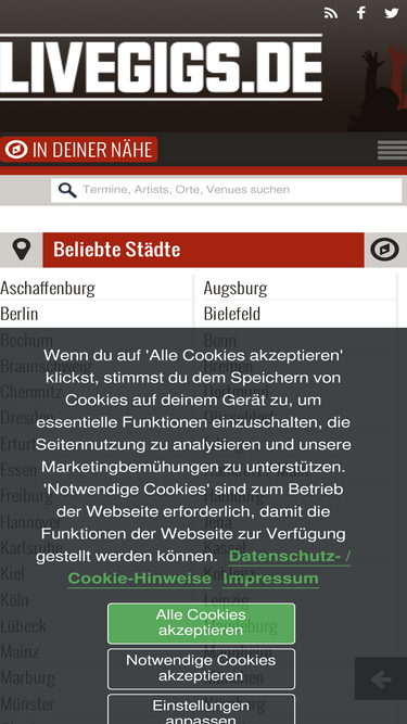 73%Konzerte, Tourdaten, Tickets, Termine, Veranstaltungen, Festivals. Alle Infos, Konzertdaten, Tickets in der Termin- und Konzert-Suchmaschine livegigs.de.