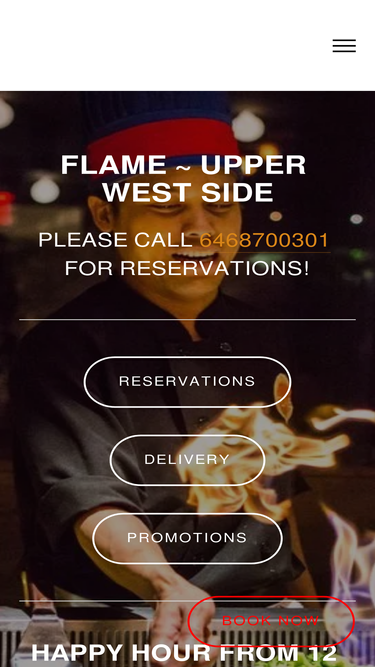98%Flame is a restaurant on New York's Upper West Side serving hibachi, sushi, and Asian bistro cuisine. Merging fun and high-quality ingredients with casual dining, Flame is perfect for any event. Every moment is unforgettable and exciting. Flame is an experience you don’t want to miss out on!