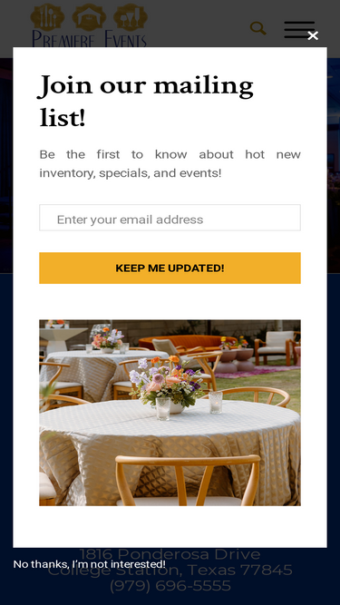78%Premiere Events offers Linens, Tents, and Event Rentals Galore for your Wedding, Party, or Event. Visit one of our showrooms in Austin or College Station today!