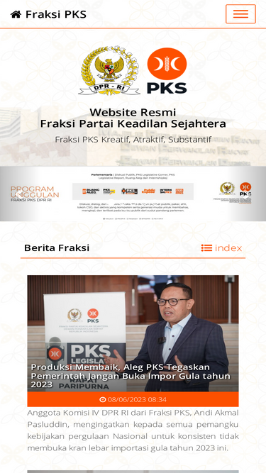 83%Website Resmi Fraksi PKS DPR RI. Terdepan dalam memperjuangkan kepentingan rakyat untuk mewujudkan Indonesia yang berkarakter, bermartabat, adil, dan sejahtera.