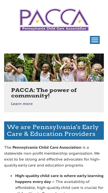 74%as a statewide, nonprofit membership organization serving early care and education businesses for nearly 50 years, pacca’s leaders and members share a commitment to providing high-quality child development and early learning opportunities to children.