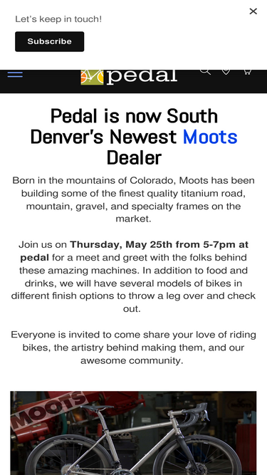 100%*Completing an order will trigger contact from a pedal employee to start the order for your new custom Moots!* Road riding and not having to skip that less than perfect surface that has been...