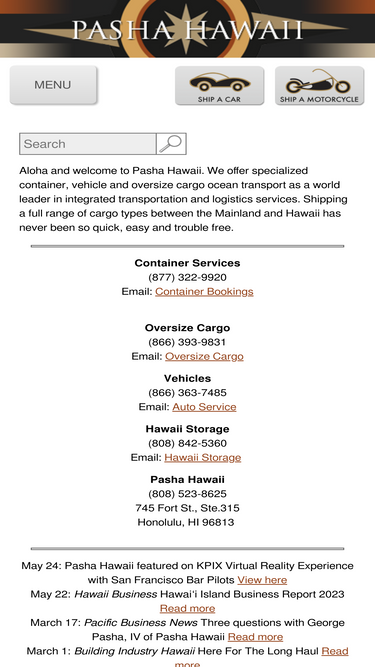 pasha hawaii offers specialized container, car, truck, suv, atv, motorcycle, minivan and oversize cargo ocean transport between the mainland us and hawaii.