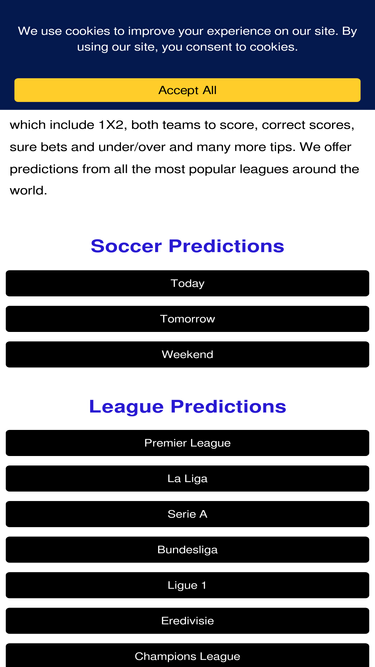97%All Soccer Predictions for today and tomorrow. We remain the best football/soccer prediction website in the world and the only site that predicts football matches correctly. We offer 100% football betting tips, free betting tips, free soccer prediction, sure odds, latest results, up to date information, football analysis, 99 percent football prediction, and 90 accurate predictions.