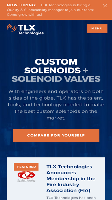 98%Custom solenoids and solenoid valves for automotive, industrial, off-highway and fire-suppression designed and manufactured by TLX Technologies.