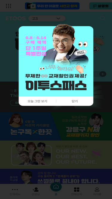 95%수능 인강 연간이용권 올공plan, 내신부터 수능까지 완벽 대비, 모의고사 풀서비스 해설강의, ai기반 강좌 추천, 특별기획전 상시 오픈
