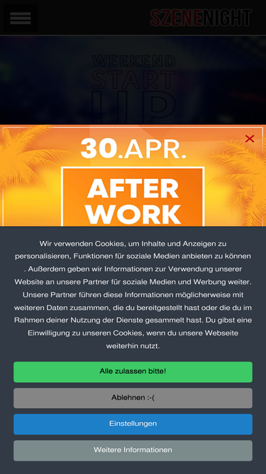 66%Werben Sie jetzt preiswert und gezielt auf Szenenight und erreichen Sie mit Ihrer Marke oder Veranstaltung über 8 Millionen Seitenaufrufe pro Jahr.
