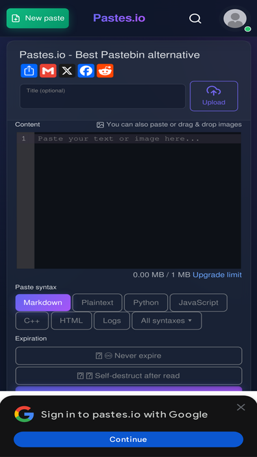 Create your free accountpaste.ee