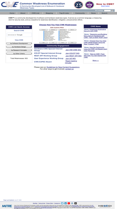 82%common weakness enumeration (cwe) is a list of software and hardware weaknesses.