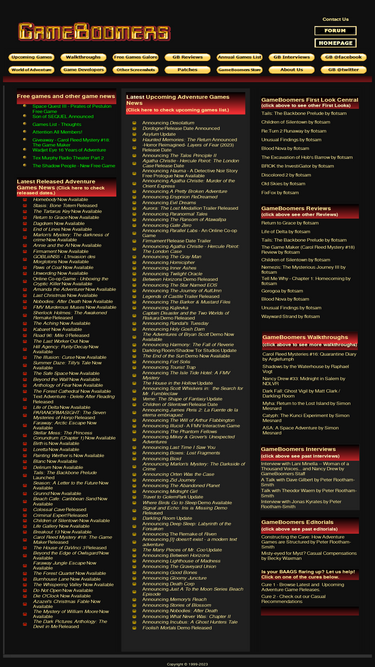 72%gameboomers provides pc adventure games news, adventure games forums, game walkthroughs, reviews, free games, game patches and independent games news.