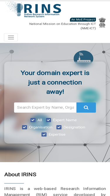 80%Explore research profiles, academic output, and collaborations through the IRINS platform – a trusted RIMS for Indian institutions.