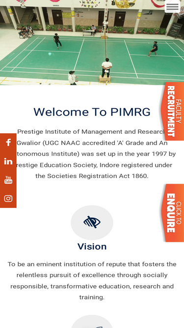 80%one of the leading institutes in gwalior, pimrg is a ugc-approved & naac-accredited grade 'a' management institute with recognized management research center.