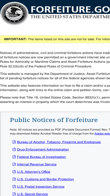 90%the u.s. department of justice forfeiture home page provides access to forfeiture information.