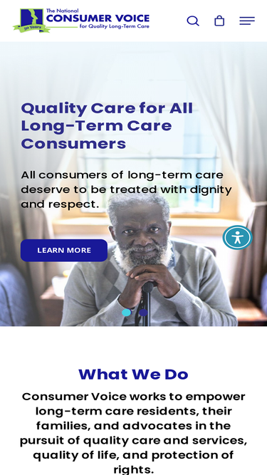 100%Consumer Voice works to empower long-term care residents, their families, and advocates in the pursuit of quality care and services, quality of life, and protection of rights