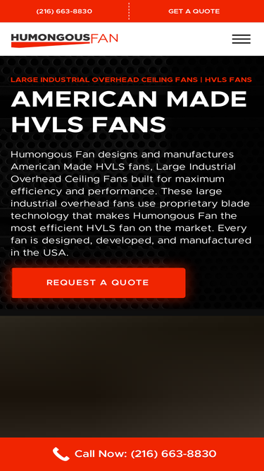 Humongous Fan designs and manufactures American Made HVLS fans, Large Industrial Overhead Ceiling Fans built for maximum efficiency and performance. These