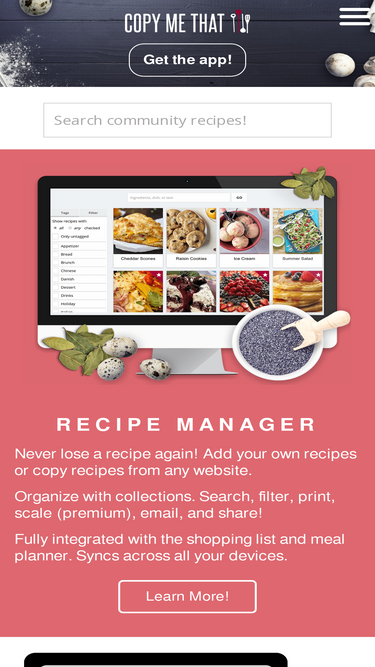 78%your recipes, together forever. copy any recipe from any website with a click. you'll have your own copy of the full recipe. then edit, organize, plan, and shop. and eat!