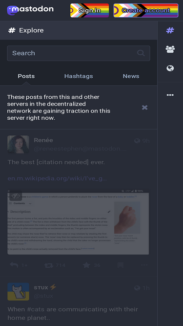 79%Sign up on Mastodon today! With an account, you will be able to follow people, post updates and exchange messages with users from any Mastodon server and more!