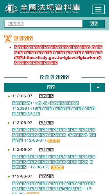 歡迎使用全國法規資料庫網站,本網站提供各界經由網際網路單一窗口簡單、方便、公開查詢法規資料及各機關法規網站,以達有效管理及公開法令資訊,建構法治社會之目標。