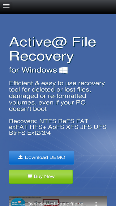 100%active@ file recovery provides ability to detect and recover lost files and damaged disks.