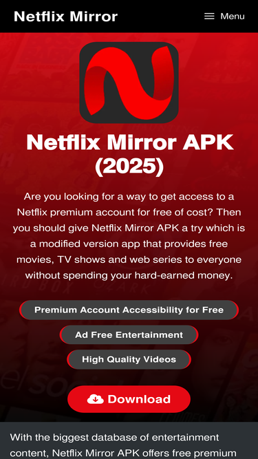 Netflix Mirror - Get access to all the premium content in high quality for free with Netflix Mirror APK latest version for Android, Smart TV, and PC.