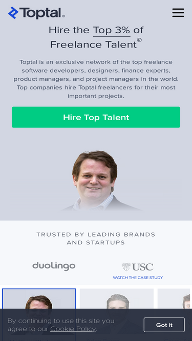78%Toptal offers top Node.js developers on an hourly, part-time, or full-time contract basis. Clients include Thumbtack, Bridgestone, and Motorola.