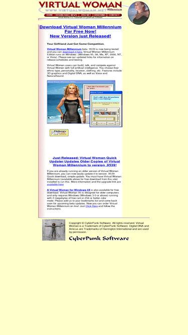 74%download virtual woman, a windows virtual girlfriend game with artificial intelligence that can talk to and compete against you. you choose ethnic type, personality, location, clothing etc. throw away solitaire forever!