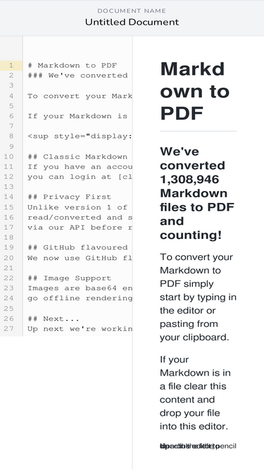 100%Select and upload your file containing markdown markup and we'll convert it to a PDF for you in an instant.