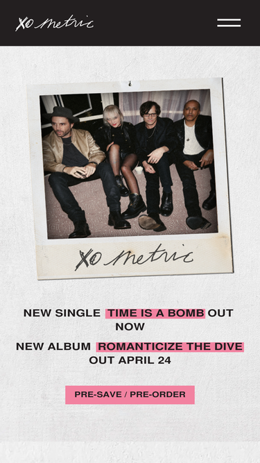 96%Official website of Metric. Get the latest tour dates, music, media and more. Sign up for our newsletter to receive pre-sale tickets and all the latest news.