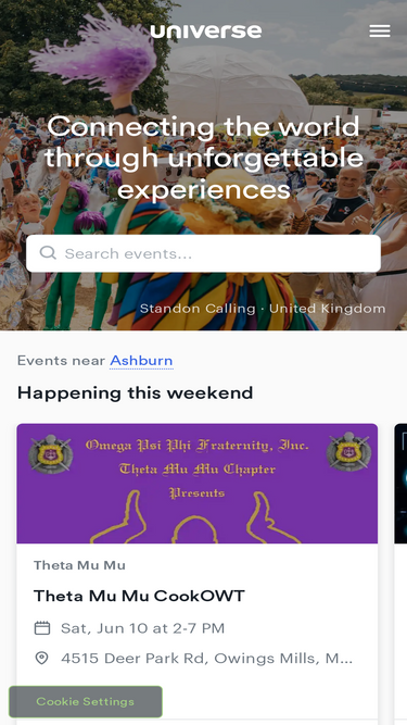 85%Global events, curated for local fans. Discover your next adventure on Universe.