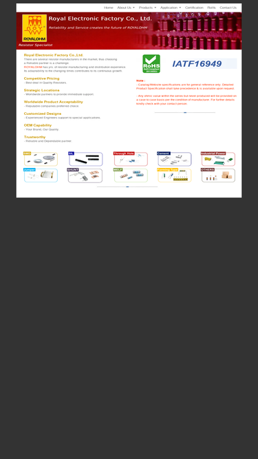 88%royal electronic factory (thailand) co.,ltd. there are several resistor manufacturers in the market, thus choosing a reliable partner is a challenge. royalohmm has more than 30 yrs. of resistor manufacturing and distribution experience. its adaptability to the changing times contributes to its continuous growth.