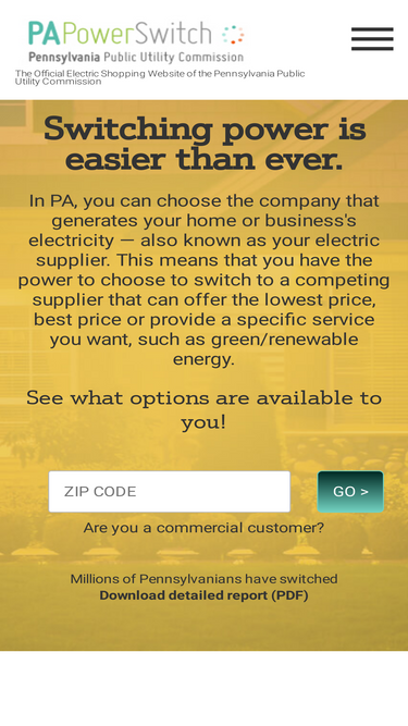 89%Find an electric supplier near you and compare energy options for your home or business in Pennsylvania. Enter your zip code to get started.