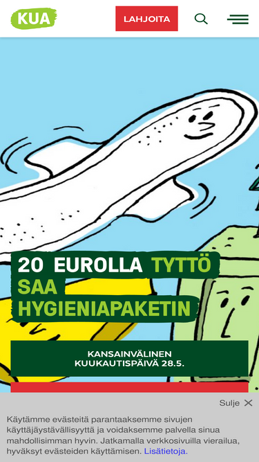 35%Sinun apusi tavoittaa luonnononnettomuuksien ja konfliktien uhrit, sekä kotimaassa apua tarvitsevat esimerkiksi ystävätoiminnan ja nuorten turvatalojen kautta. Löydät tältä sivulta kaikki ohjeet. Lahjoita heti.
