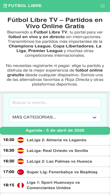 72%Disfruta Fútbol Libre TV online y gratis. Mira partidos en vivo del fútbol argentino, Copa Libertadores, Sudamericana, LaLiga y Champions League.