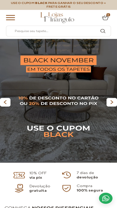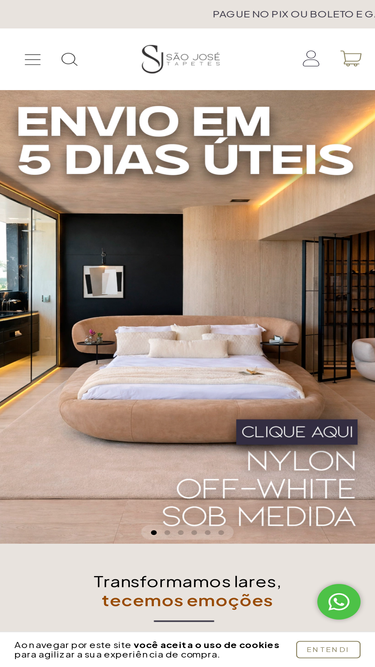 95%loja virtual especializada na venda de tapetes de diferentes modelos. possibilidade de personalizar as medidas do seu tapete de acordo com a necessidade do seu ambiente.