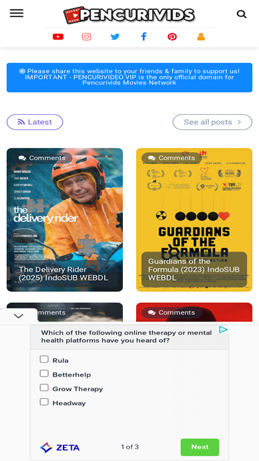 According to Similarweb data of monthly visits, pencurimovie.bond’s top competitor in March 2026 is pencurivids.blogspot.com. pencurimovie.bond 2nd most similar site is filmdoo.com, and closing off the top 3 is txtbin.org.
