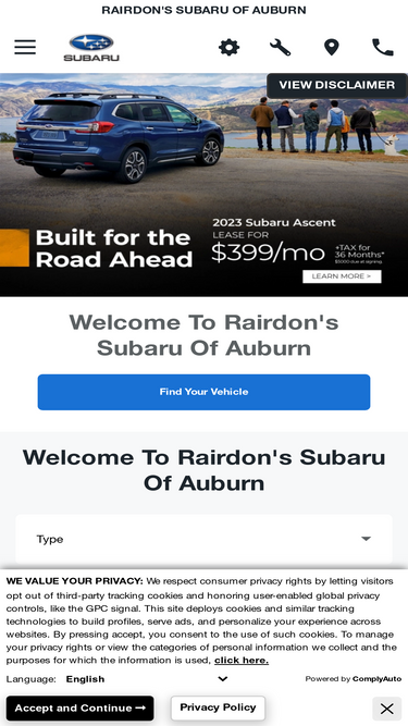 96%we know you have high expectations, and we enjoy the challenge of meeting and exceeding them. come experience the rairdon's subaru of auburn difference.