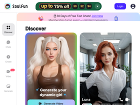 77%Engage in immersive converstions with text, images, voice and videos of AI Girlfriends. Find your soul mate AI chat that'll make your day. SoulFun - not your average AI chatbot.