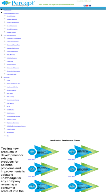 71%percept provides product testing for electronics encompassing reliability, design function, design verification, competition comparison, accelerated testing, halt testing, shock and vibration. we help ensure that your products pass testing from governmental regulatory compliance and safety certification the first time.