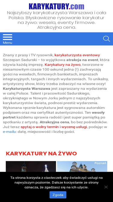 92%Najszybszy karykaturzysta na wesele w całej Polsce. Oferta 2026. Autor z TV, 100 osób 4 godziny, atrakcyjna cena - bez pośredników.