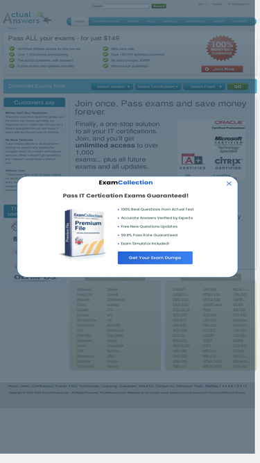 71%actual answers brings to you the $99.00 solution to all your it exam questions. guaranteed results that train you today to pass tomorrow.