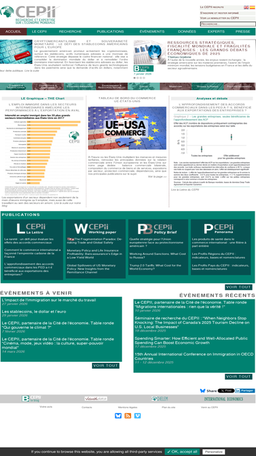 92%le cepii est le principal centre francais d'etude et de recherche en economie internationale. cet organisme public s'attache a eclairer les questions strategiques pour l'avenir de l'economie mondiale grace a une trentaine de collaborateurs: economistes, statisticiens et conseillers scientifiques.