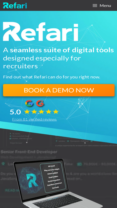 74%Refari is a suite of best-in-class, plug-and-play widgets designed to transform recruitment website Technology, career sites, Talent Board